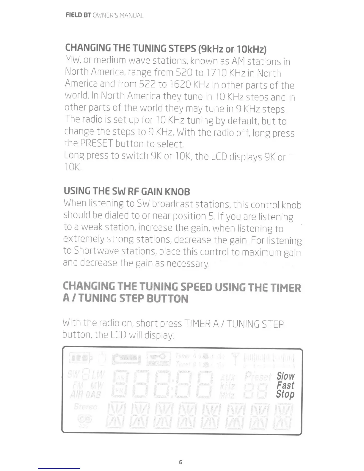 Eton FIELD BT - Changing Tuning Steps; Using the SW RF Gain Knob; Changing Tuning Speed