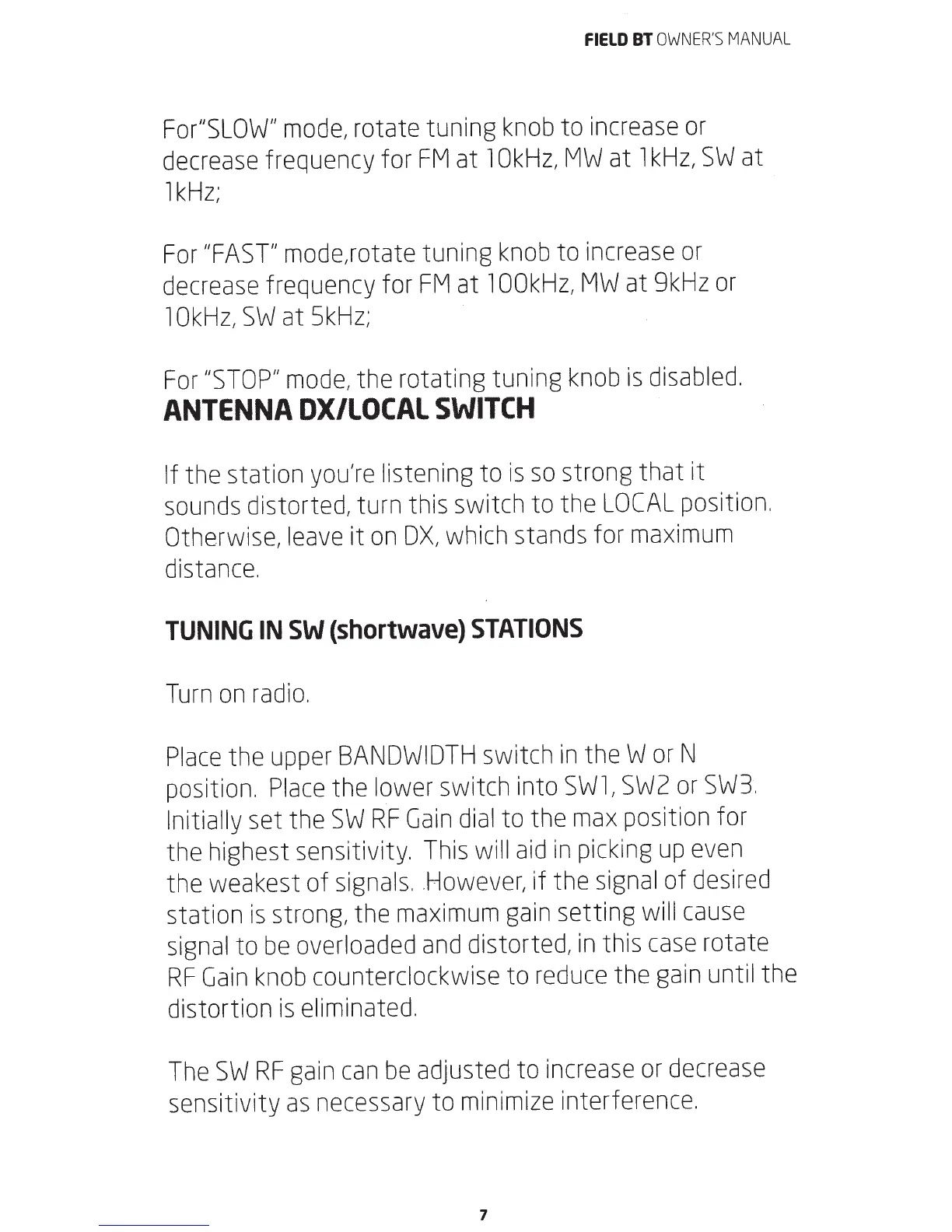 Eton FIELD BT - Antenna DX;Local Switch; Tuning in SW (Shortwave) Stations