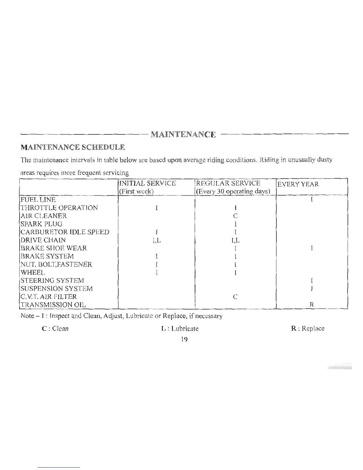 Eton Lightning-AXL50 - MAINTENANCE; MAINTENANCE SCHEDULE