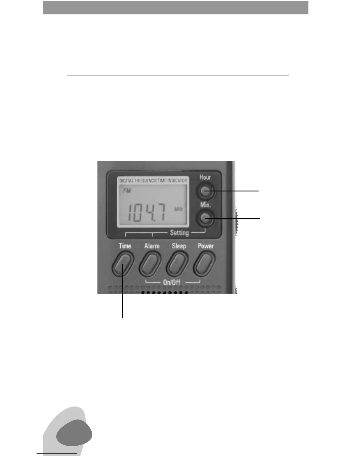 HOUR (3) and MINUTE (4) buttons. They can be pressed with quick,