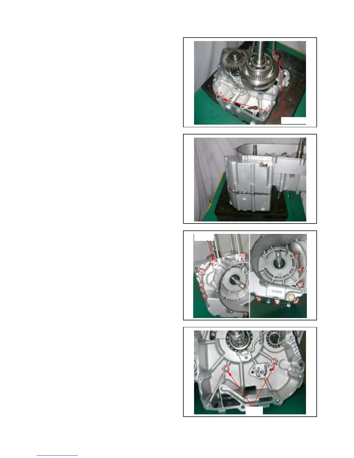 Tighten 2 bolts on the right crankcase.