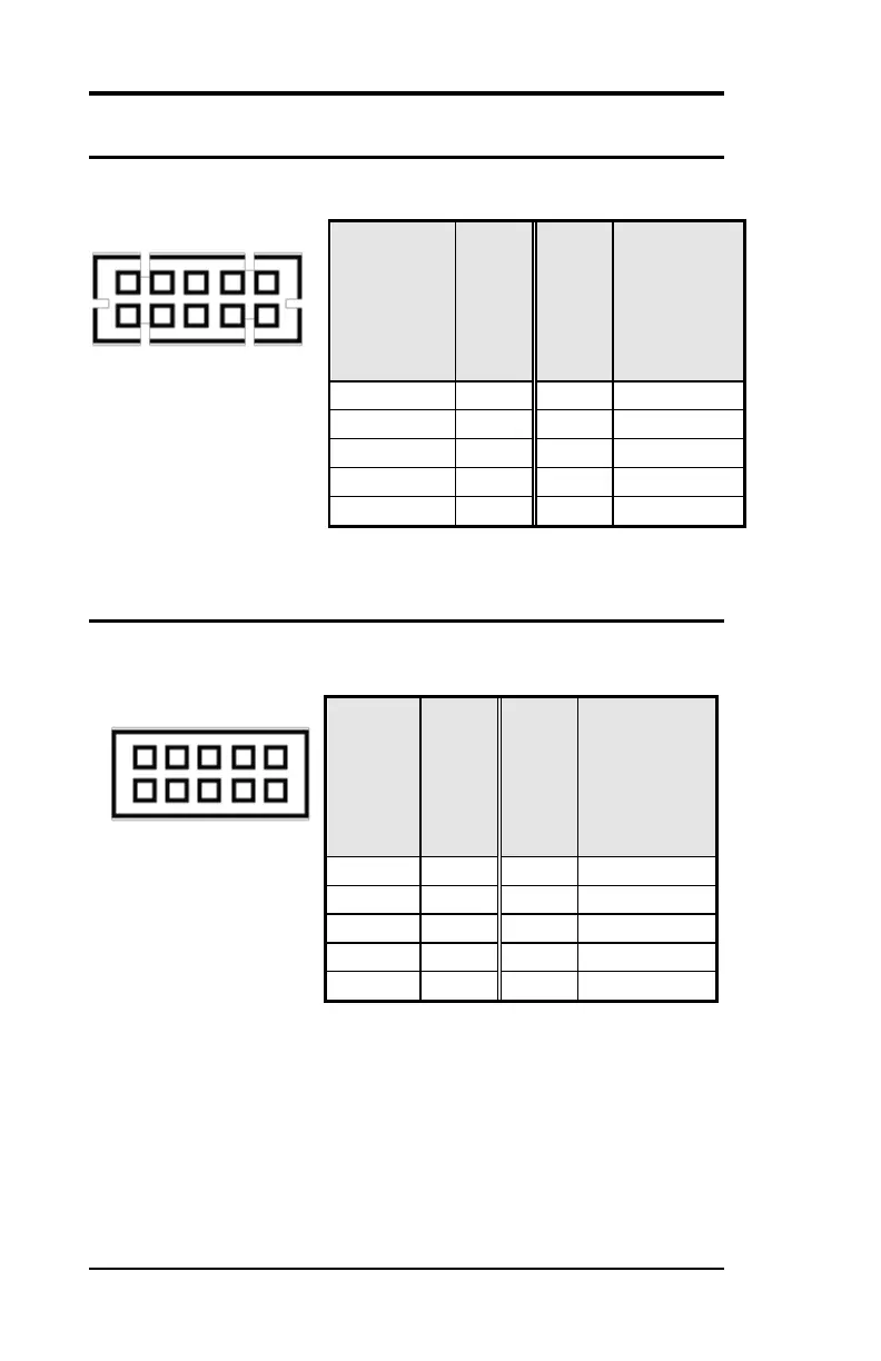 The following table shows the pin outs of the USB12, USB34, USB56