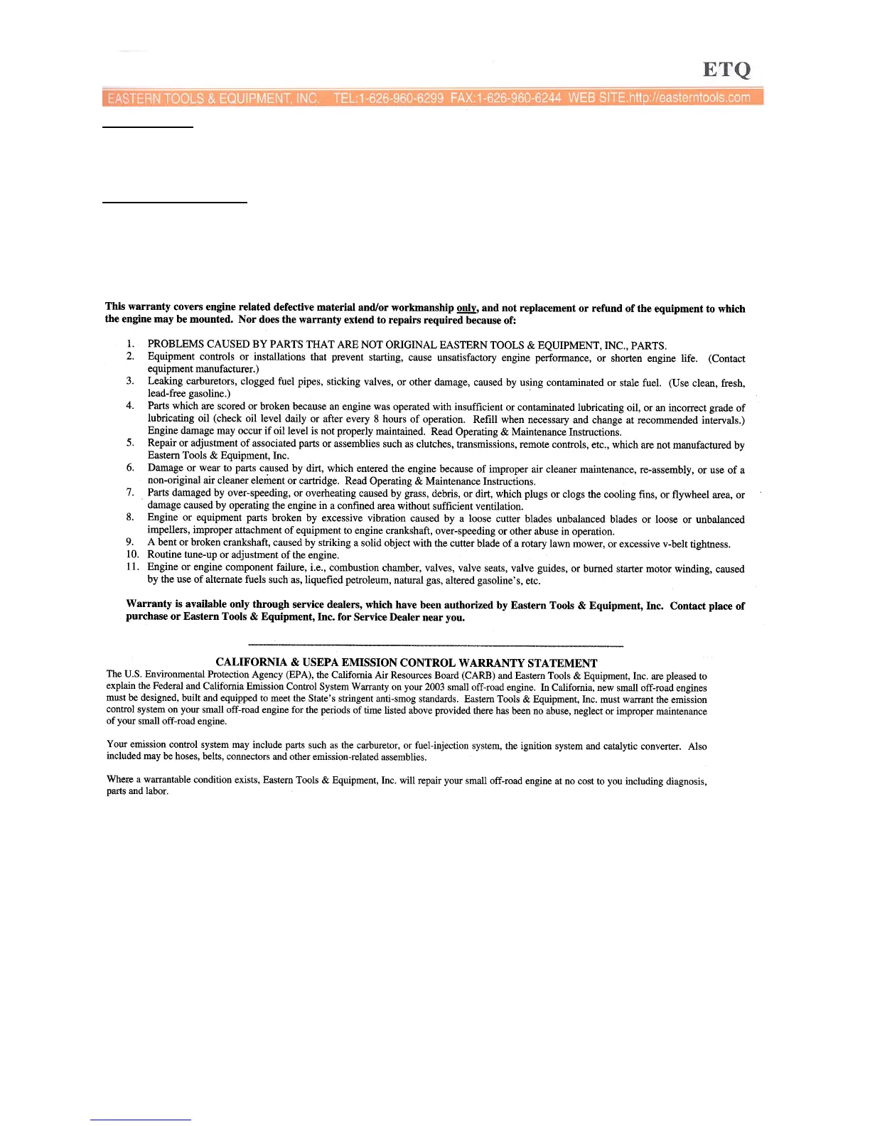 The life of an engine or your equipment depends upon the conditions under which it operates, and the care it receives. Some