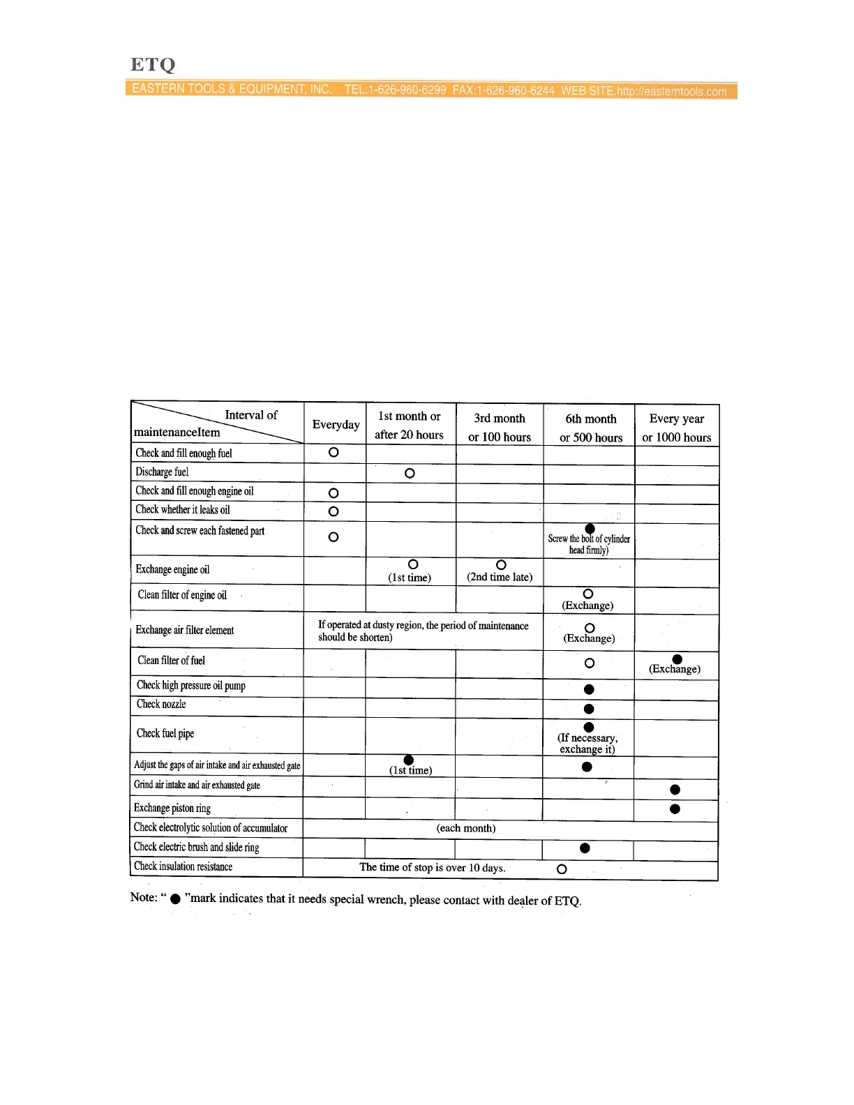 Please refer to the Table 3-1 for the proper maintenance schedule.