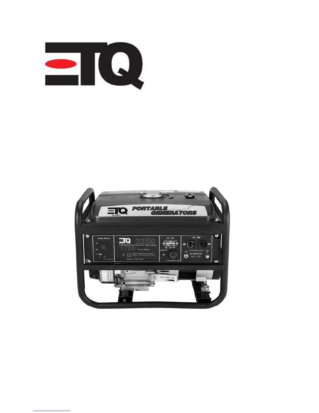 If your ETQ Portable Generator runs but provides no electrical output, there are a few things to check. First, ensure the circuit reset button is in the "on" position—wait two minutes before pressing it. If you're using an extension cord, try a different one. Also, test the generator with a different electrical device to rule out a problem with the connected device.