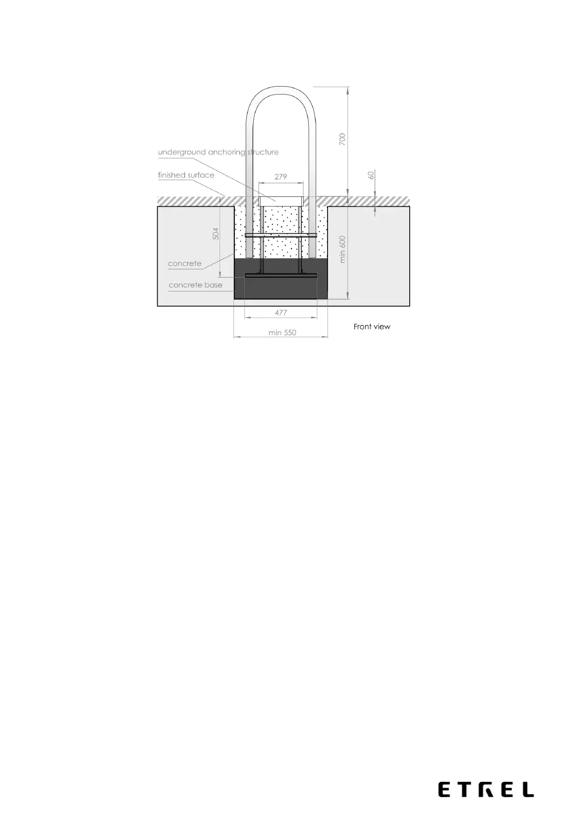 height of the concrete base must reach such a level that the height of the safety arches will be