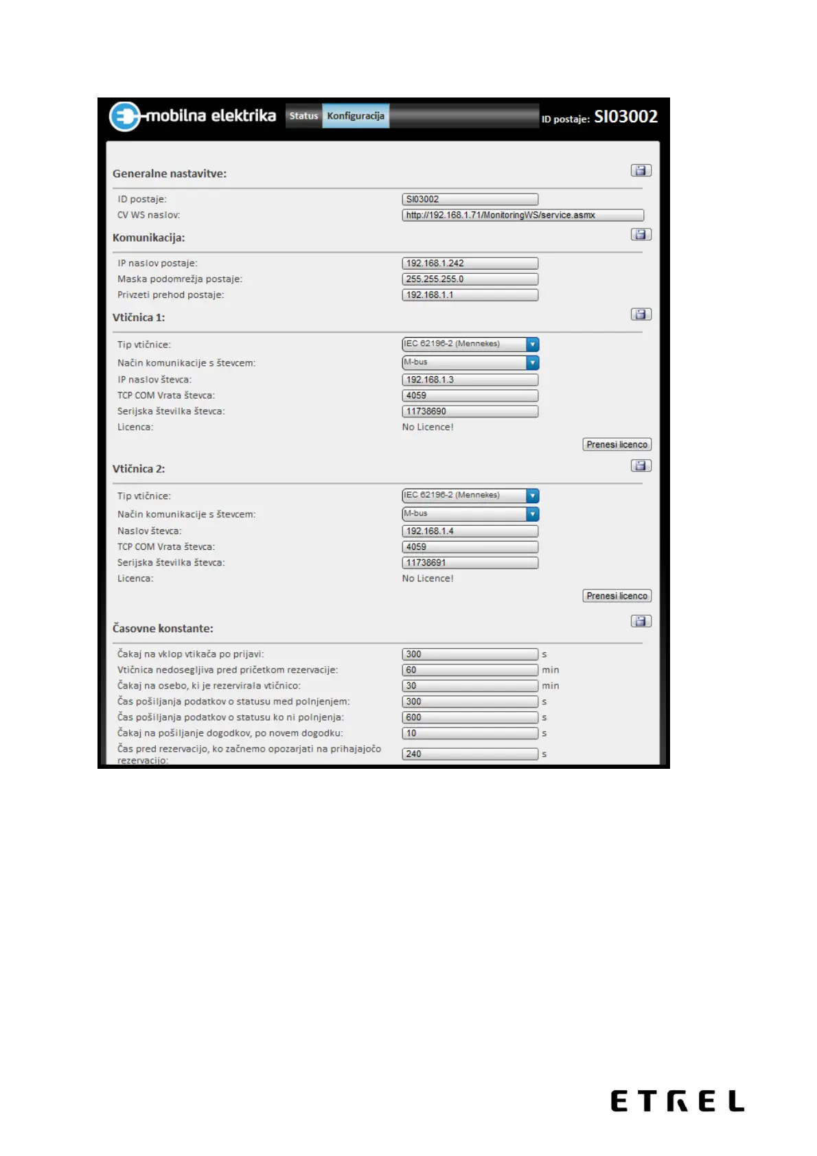 Figure 21: Example configuration screen (depicted in Slovenian language)