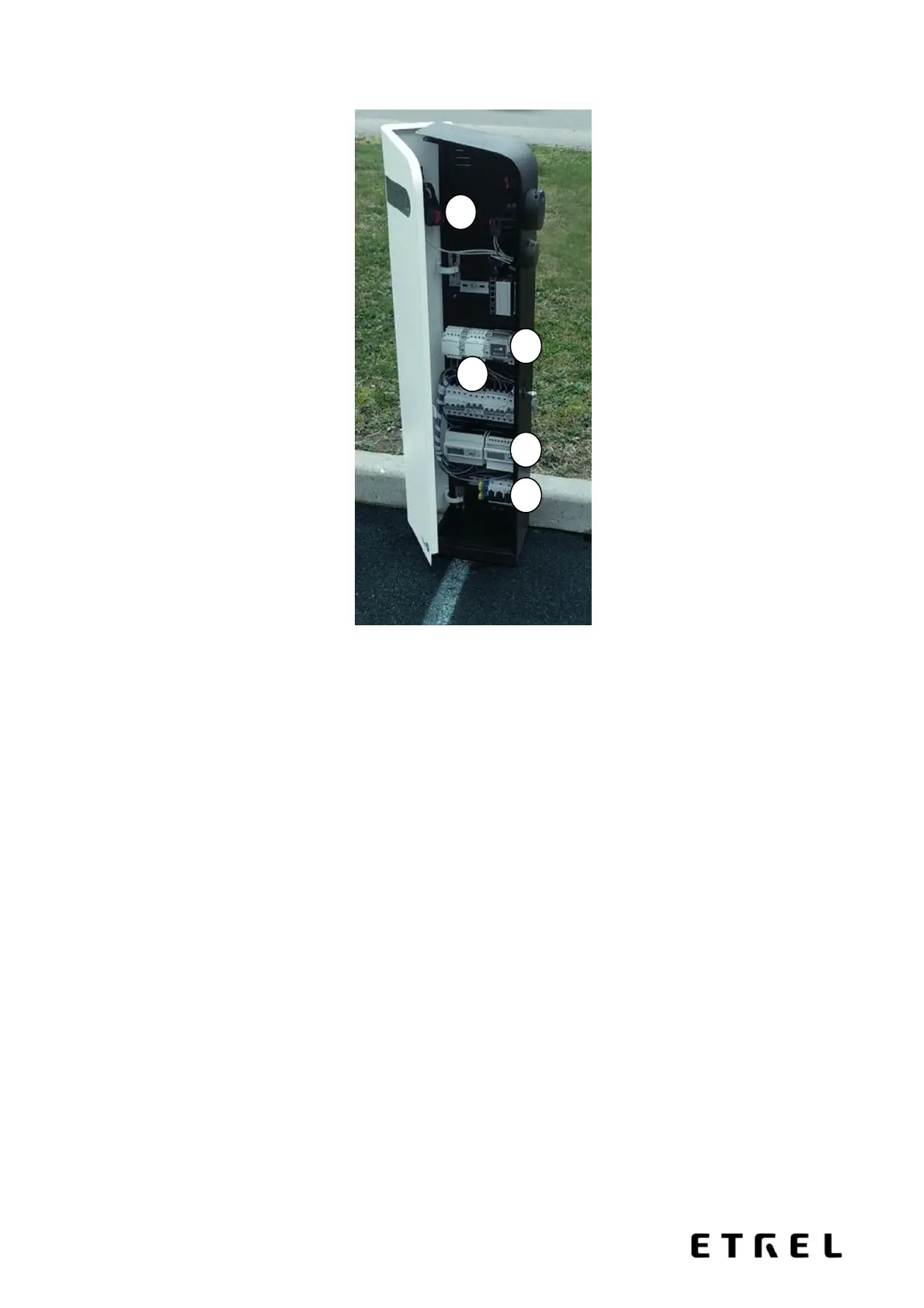 The figure above shows the general arrangement of equipment inside the charging station. The
