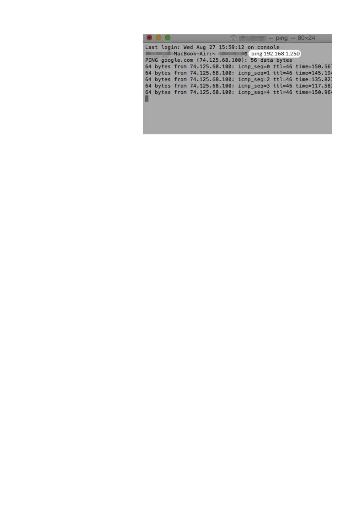 Figure 24: Ping charging station by writing ping and charging station's IP