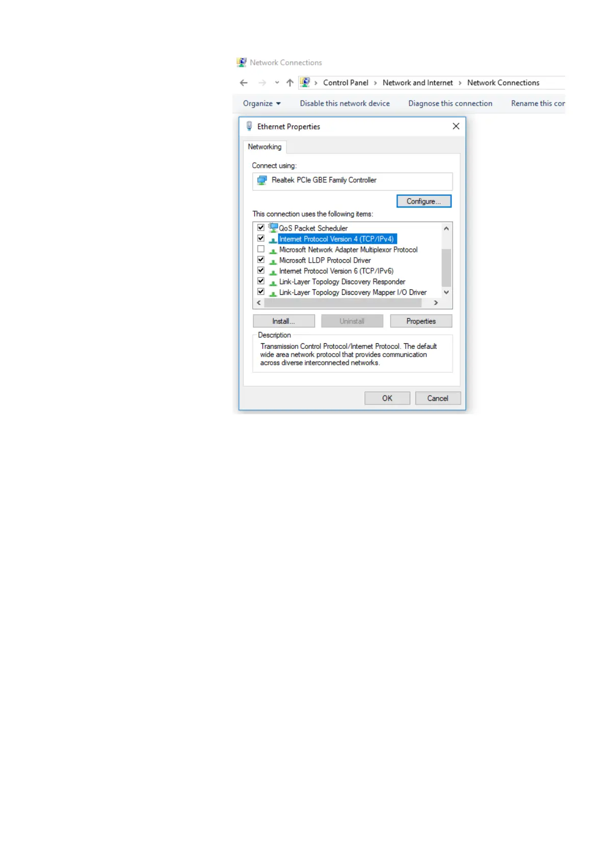 Figure 25: Locate Internet Protocol Version 4(TCP/IPv4) in network properties