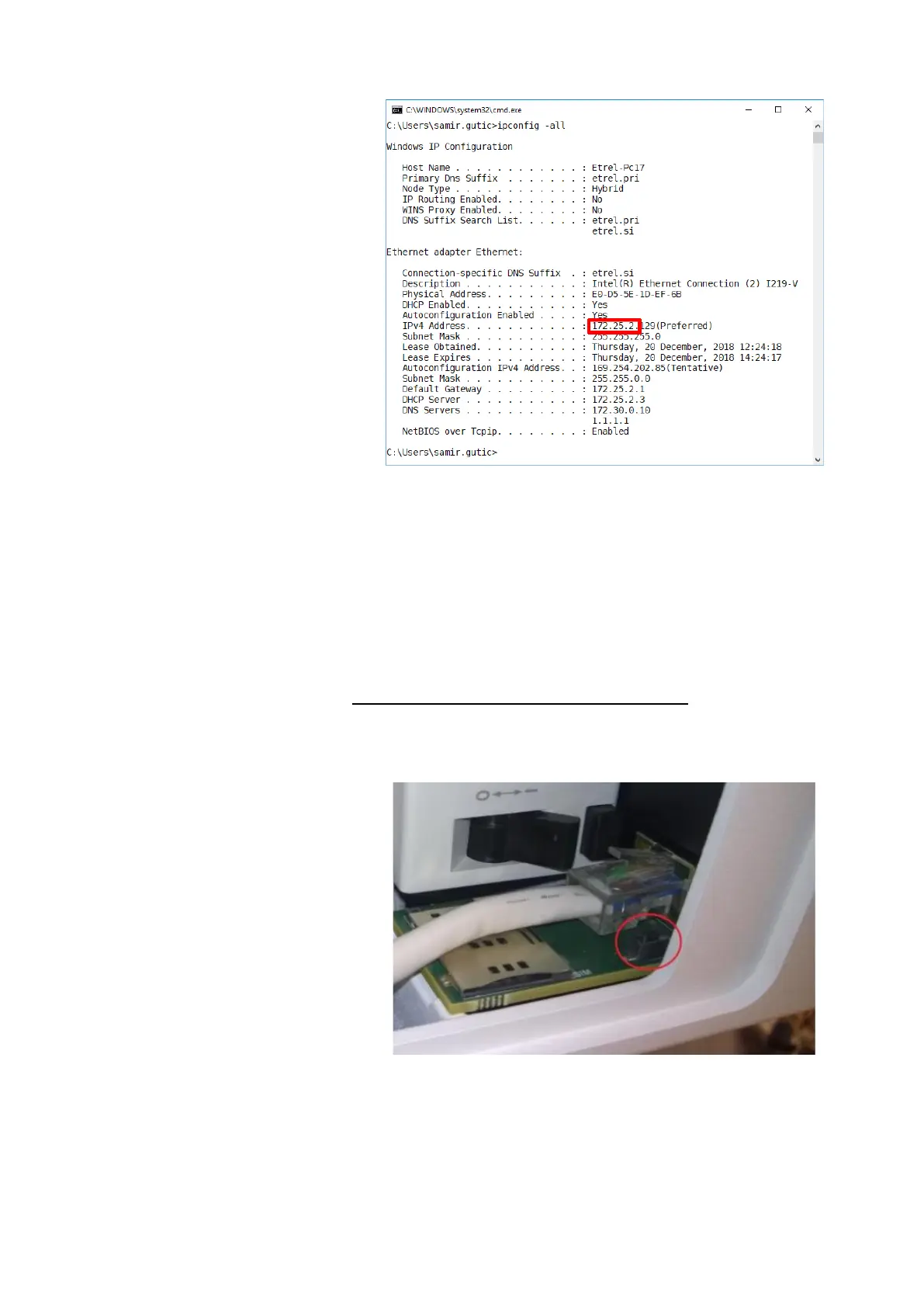 Figure 18: Display of configuration of all network interfaces of the computer