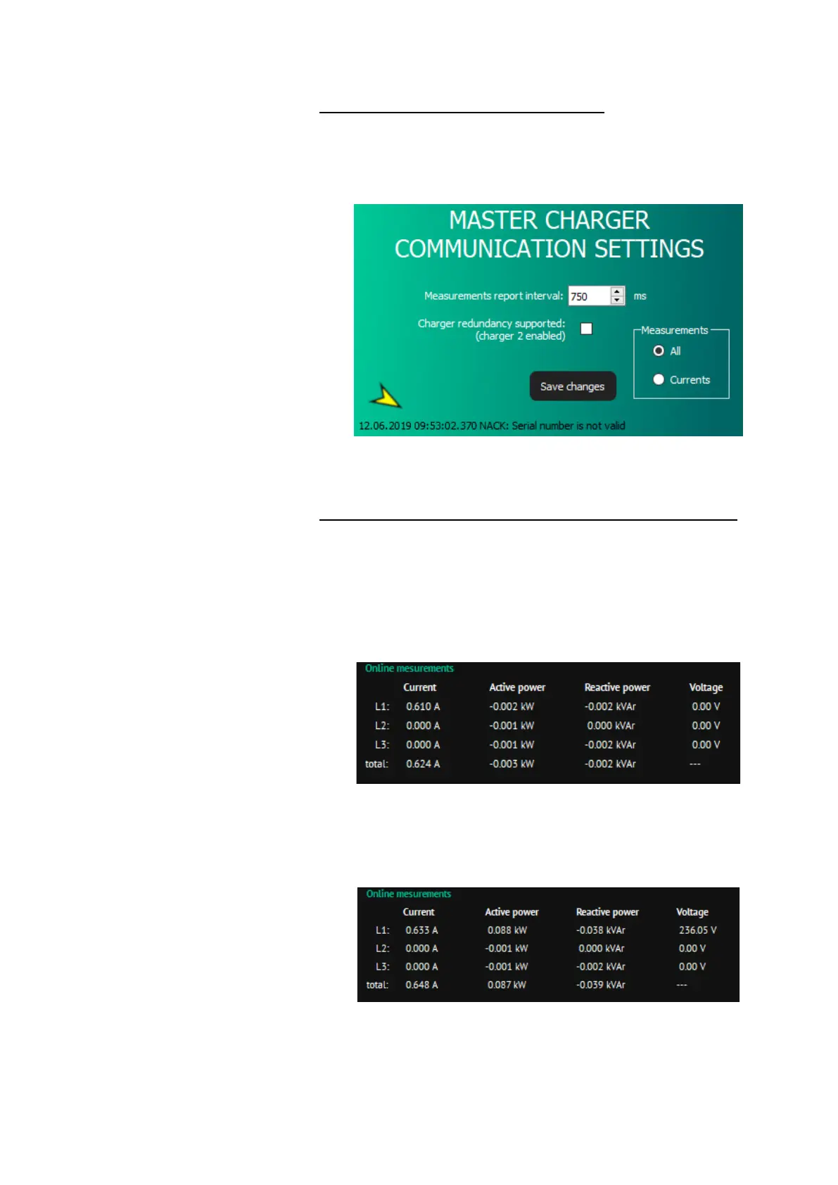 Figure 39: Display of measurements when the neutral and phase conductors are not