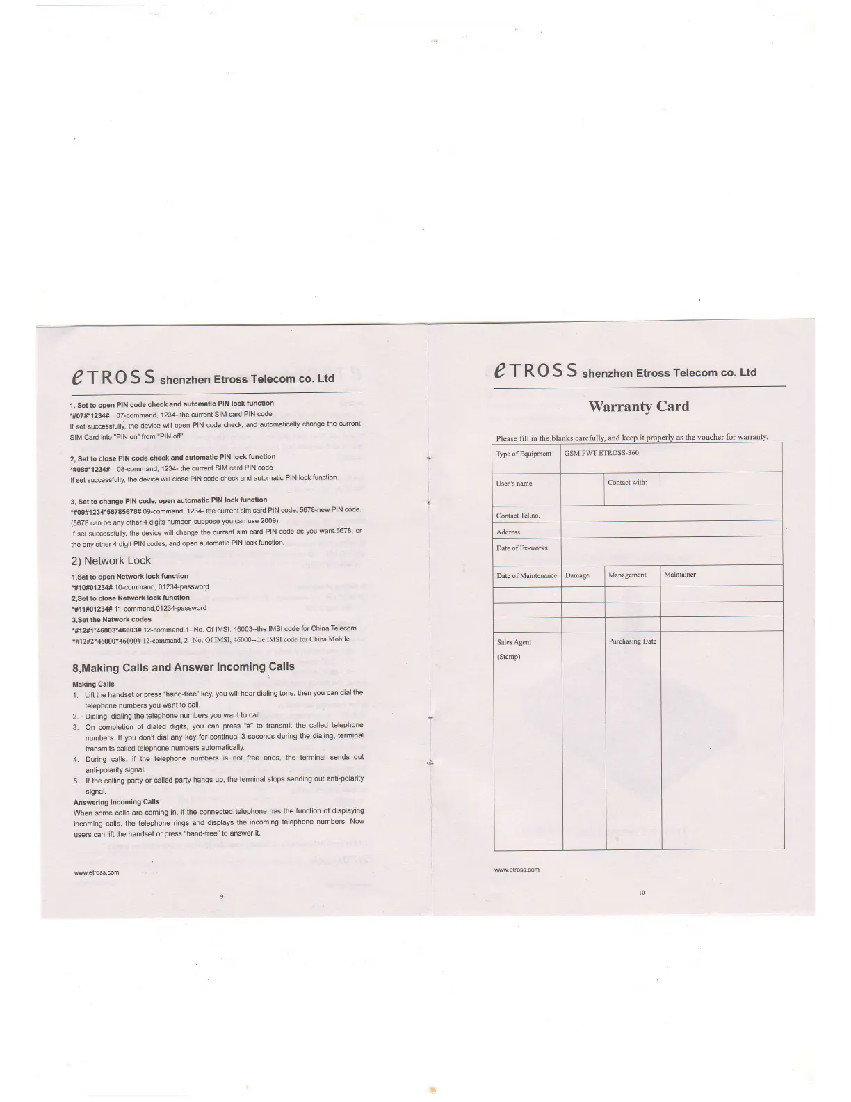 Etross ET-360 - PIN and Network Lock Configuration; PIN Code Check and Lock; Change SIM PIN; Network Lock Function
