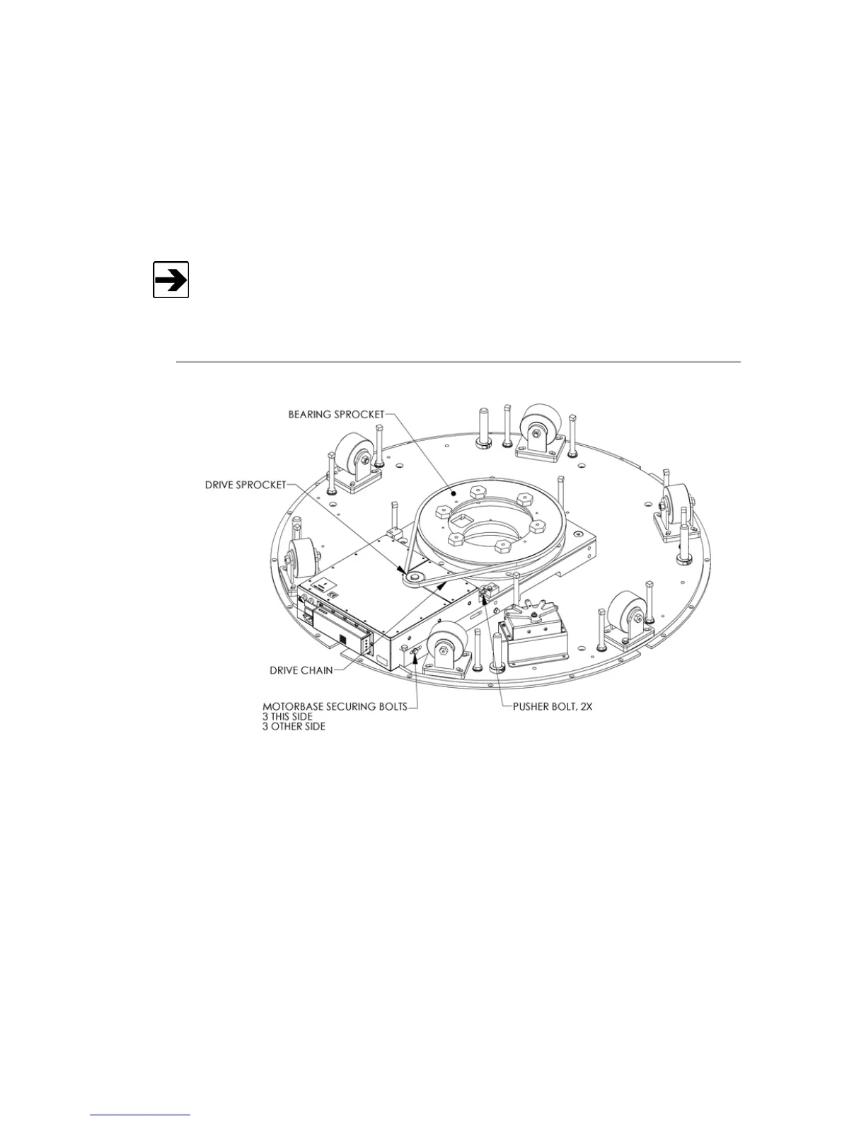 illustration, Turntable Motor Base, to locate the drive chain and bolts to