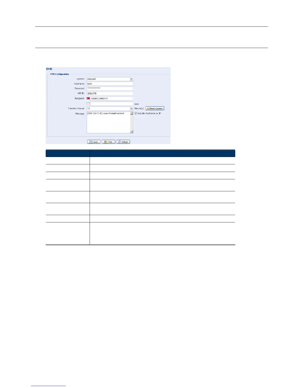 Test To know whether your SMS setting is correct, click this button to immediately send a SMS to