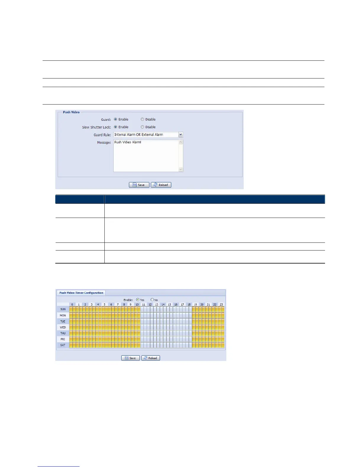 To configure Push video to enable in the specified time, select “Yes” to enable the timer function, and select the