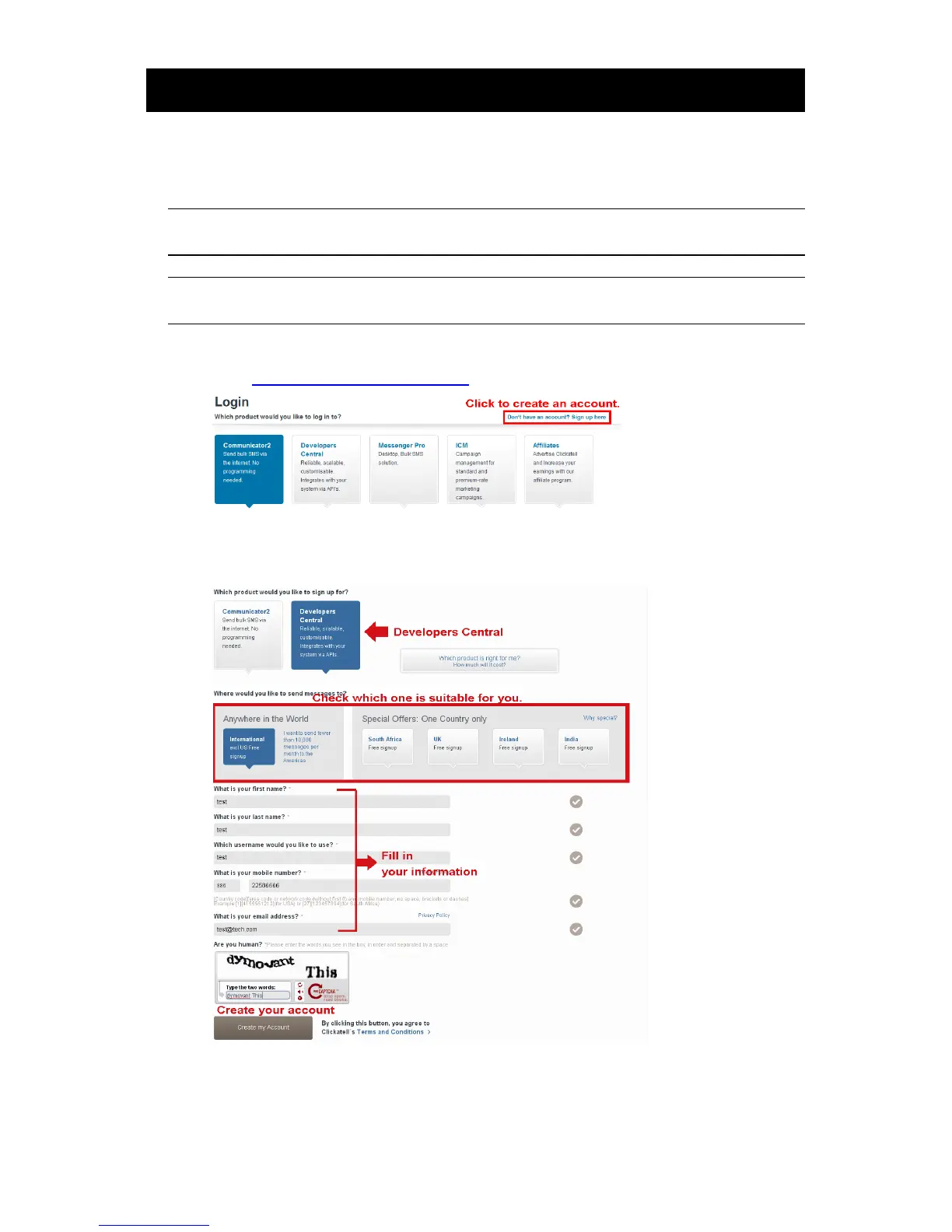 Step1: Go to http://www.clickatell.com/login.php. Sign up an account first.