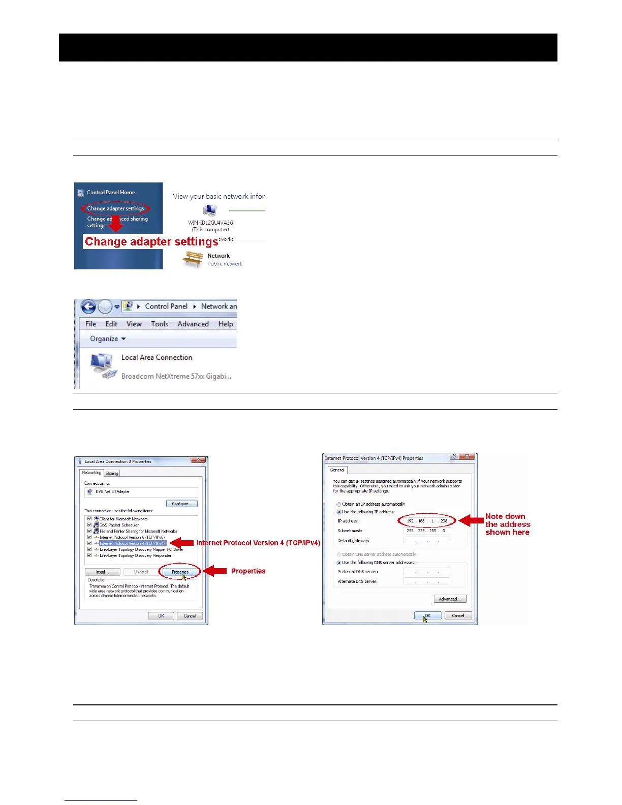 Step1: Go to "Network and Sharing Center”, and select “Change adapter settings”.