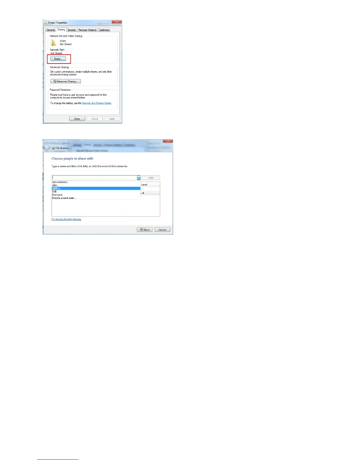 Step3: Choose the account you want to share with, and click “Share” to save.
