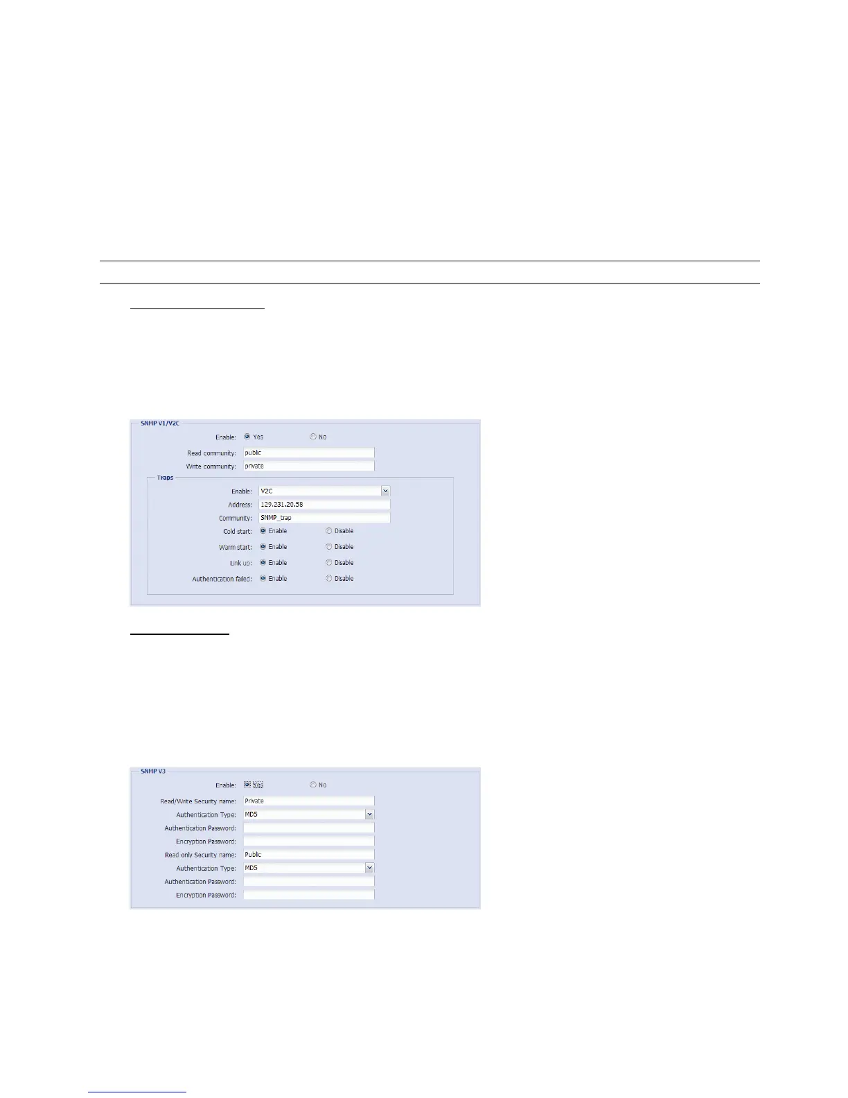 To enable “Traps” to notify the management station of important events, choose “V1” or “V2C” in “Enable”, enter