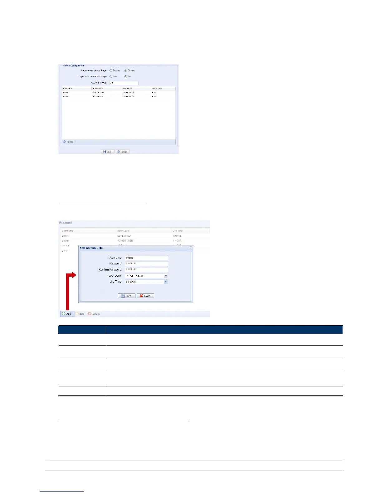 User Level Set the security level of an account to give the permission to control different functions. There are four user levels:
