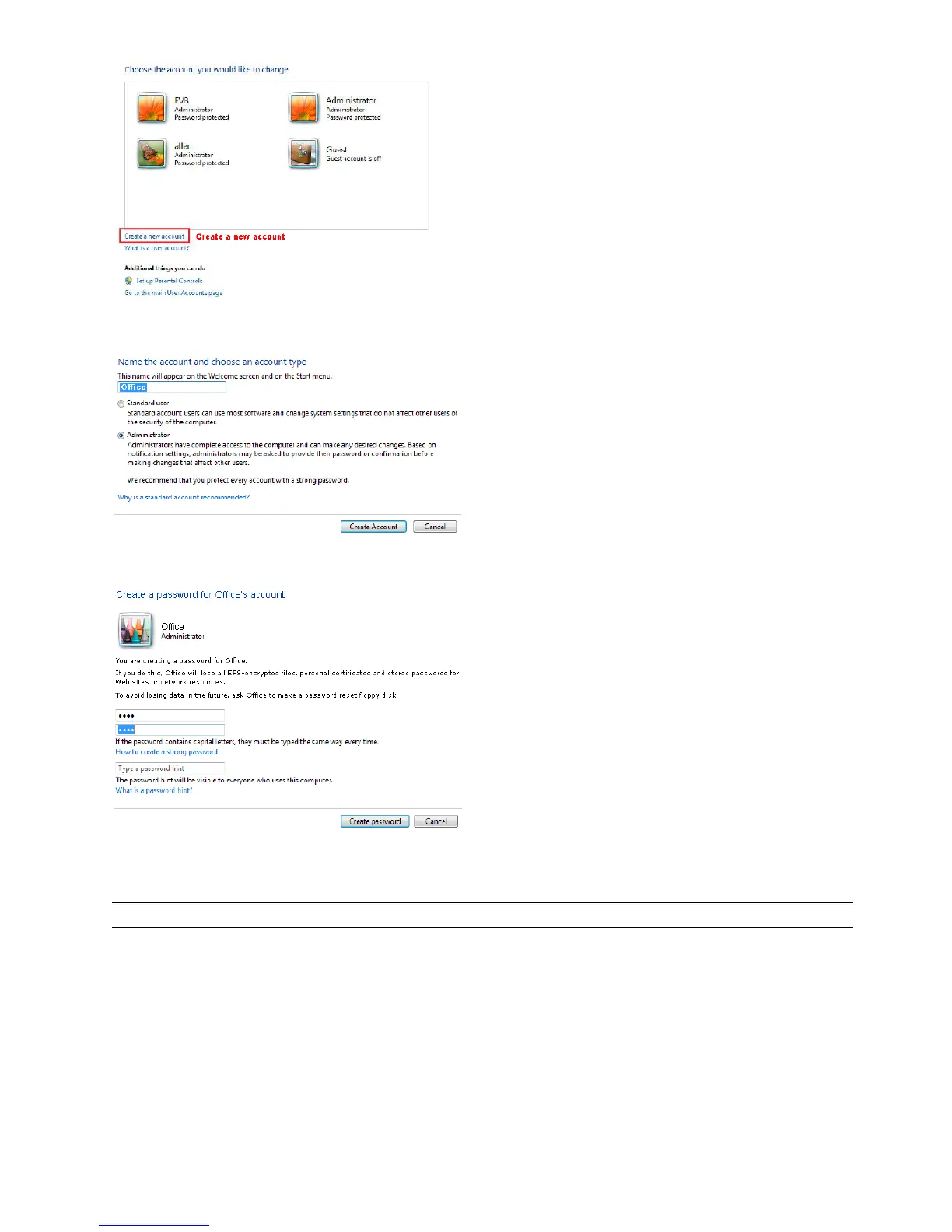 Step2: Set a user name, and choose “Administrator” for this account. Then, click “Create Account”.