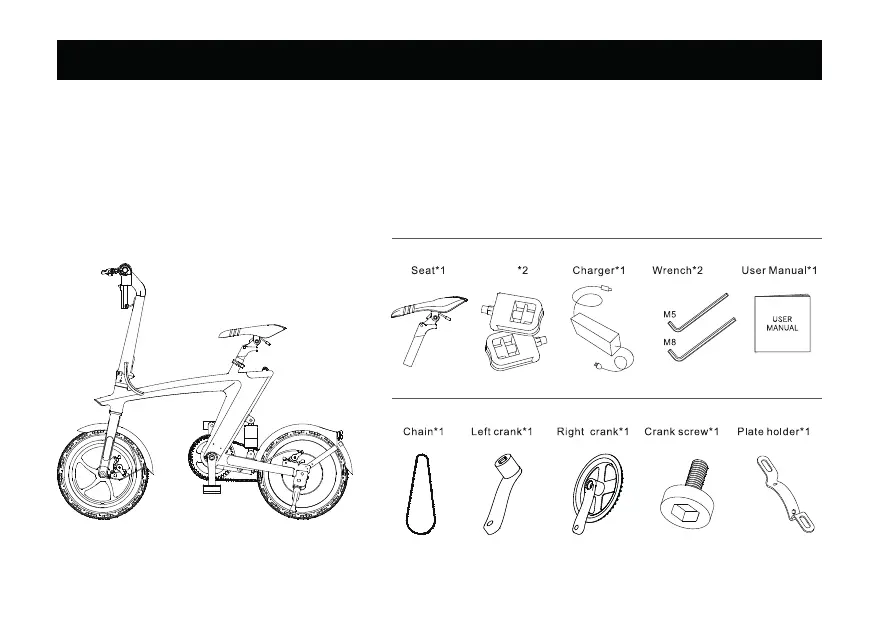 Verify that all items listed are included when unboxing your e-bike. Verify that all parts are in good
