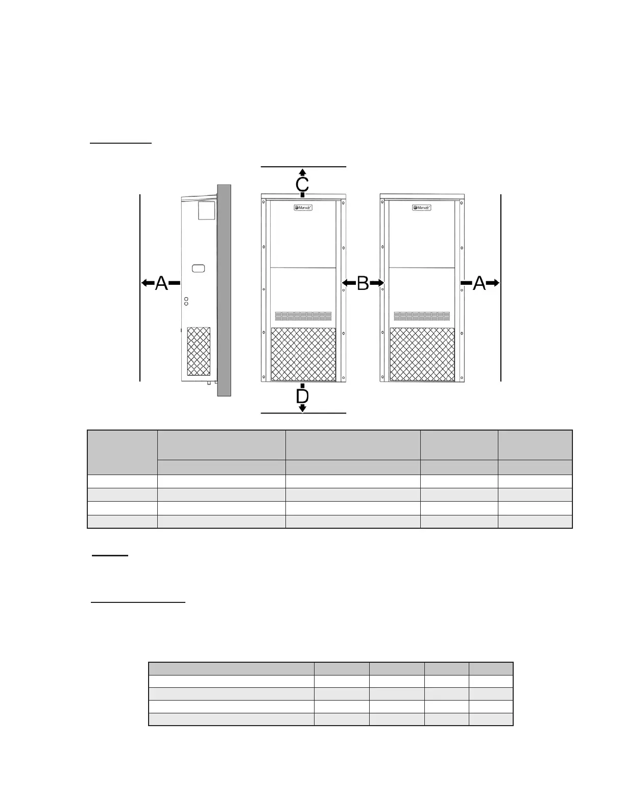 Note the minimum clearances required for proper operation and service.