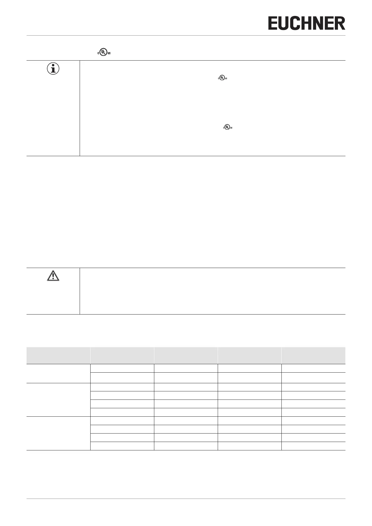 Ì On the use of other connection components, the requirements in the following table apply. EUCHNER