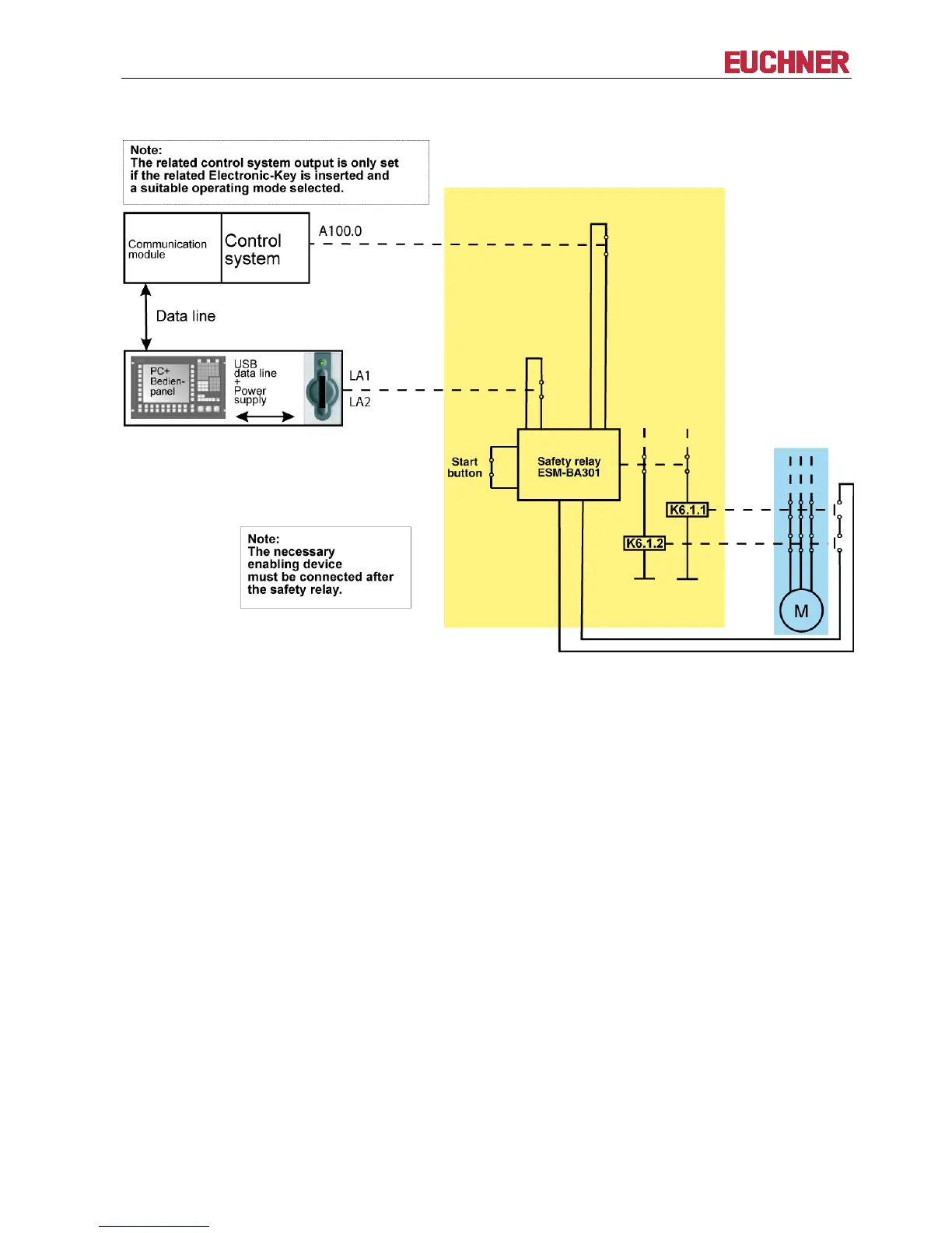 The switching contact LA1/LA2 is closed after the insertion of the Electronic-Key. The EKS FSA is coupled with