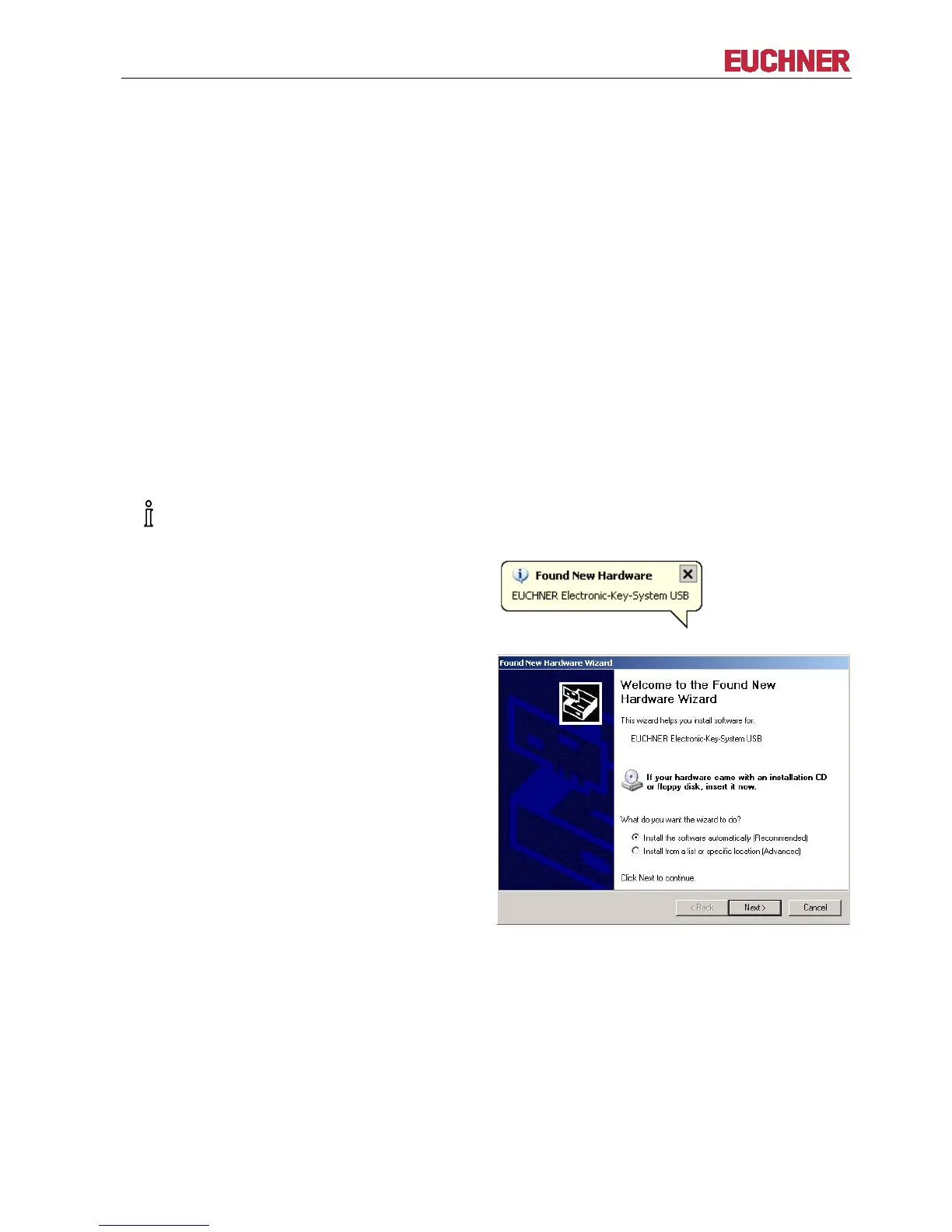 In the routine described in the following, first a driver for the EUCHNER Electronic-Key-System USB is installed