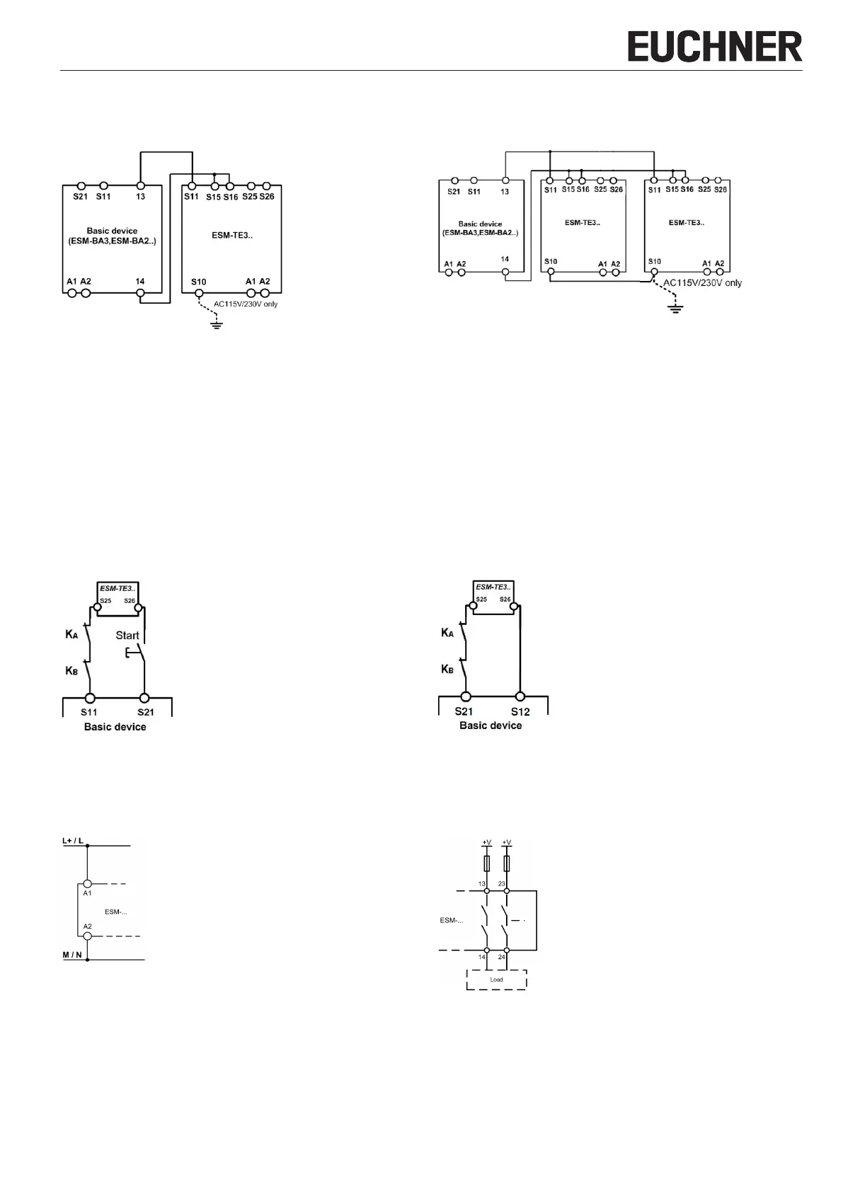 En fonction de l’application, l’appareil doit être câblé conformément aux Fig. 5 et Fig. 6 avec une unité de base EUCHNER.