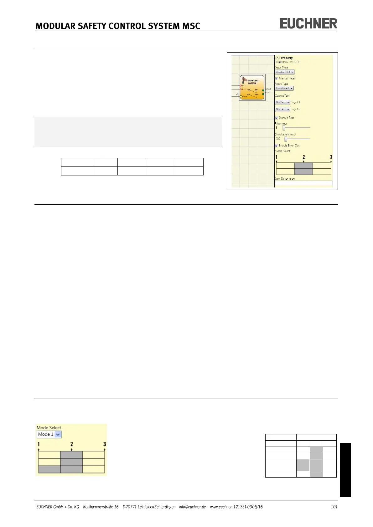 Table – Mode 1 (device with 2 NO + 1 NC)