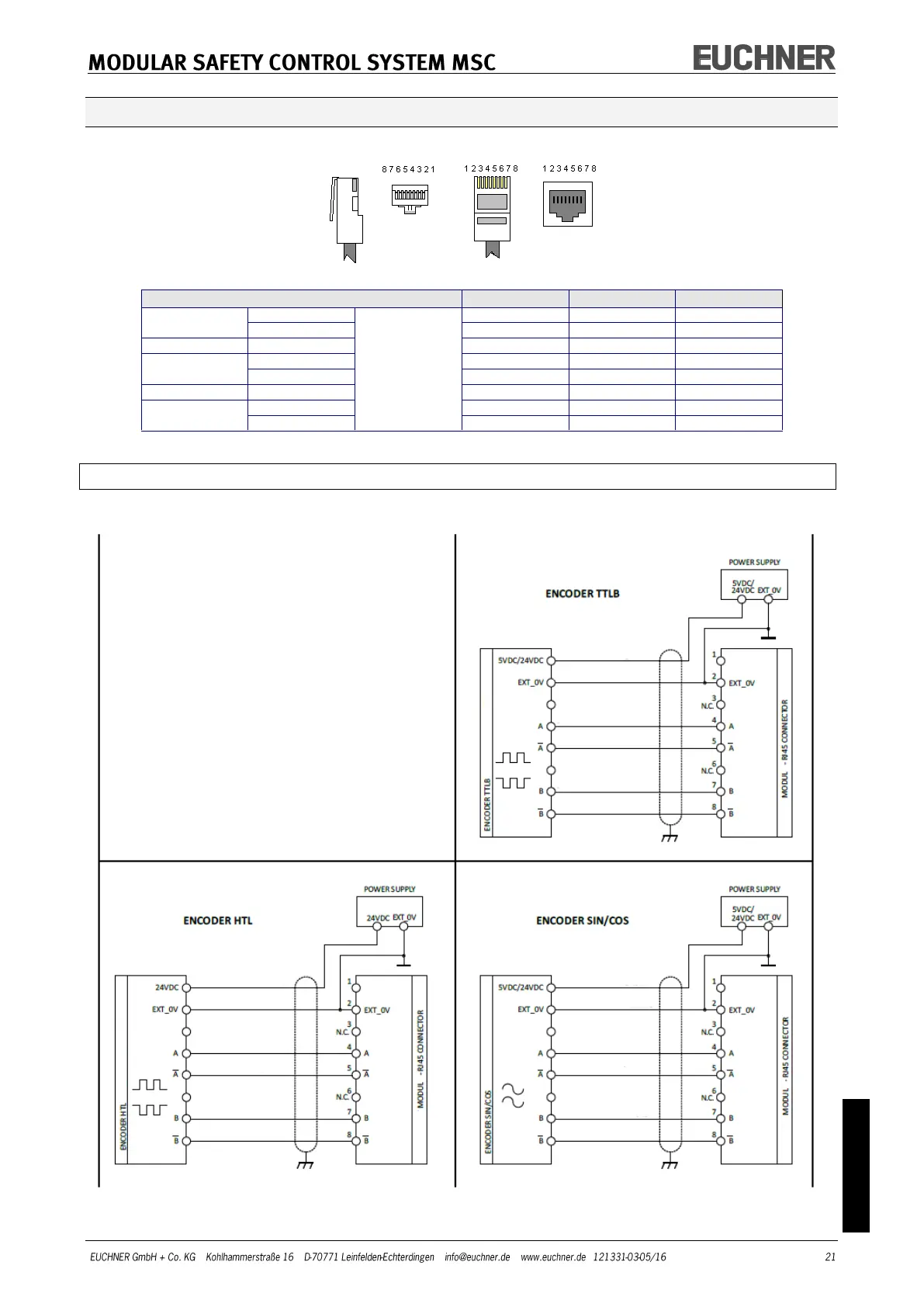 EUCHNER MSC - Encoder Connections with Rj45 Plug Connector (Spm1, Spm2)