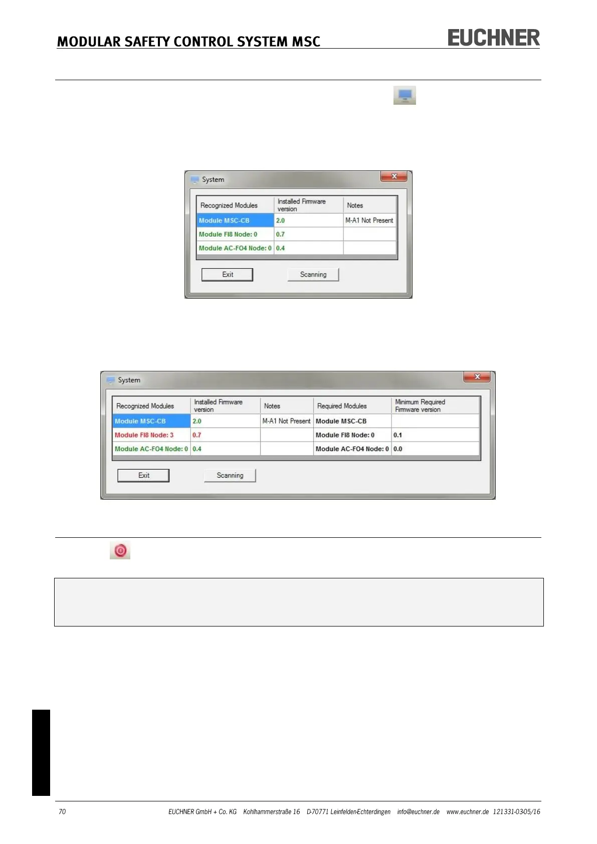 incompatibility is indicated on the module MSC-CB and the module is not started.