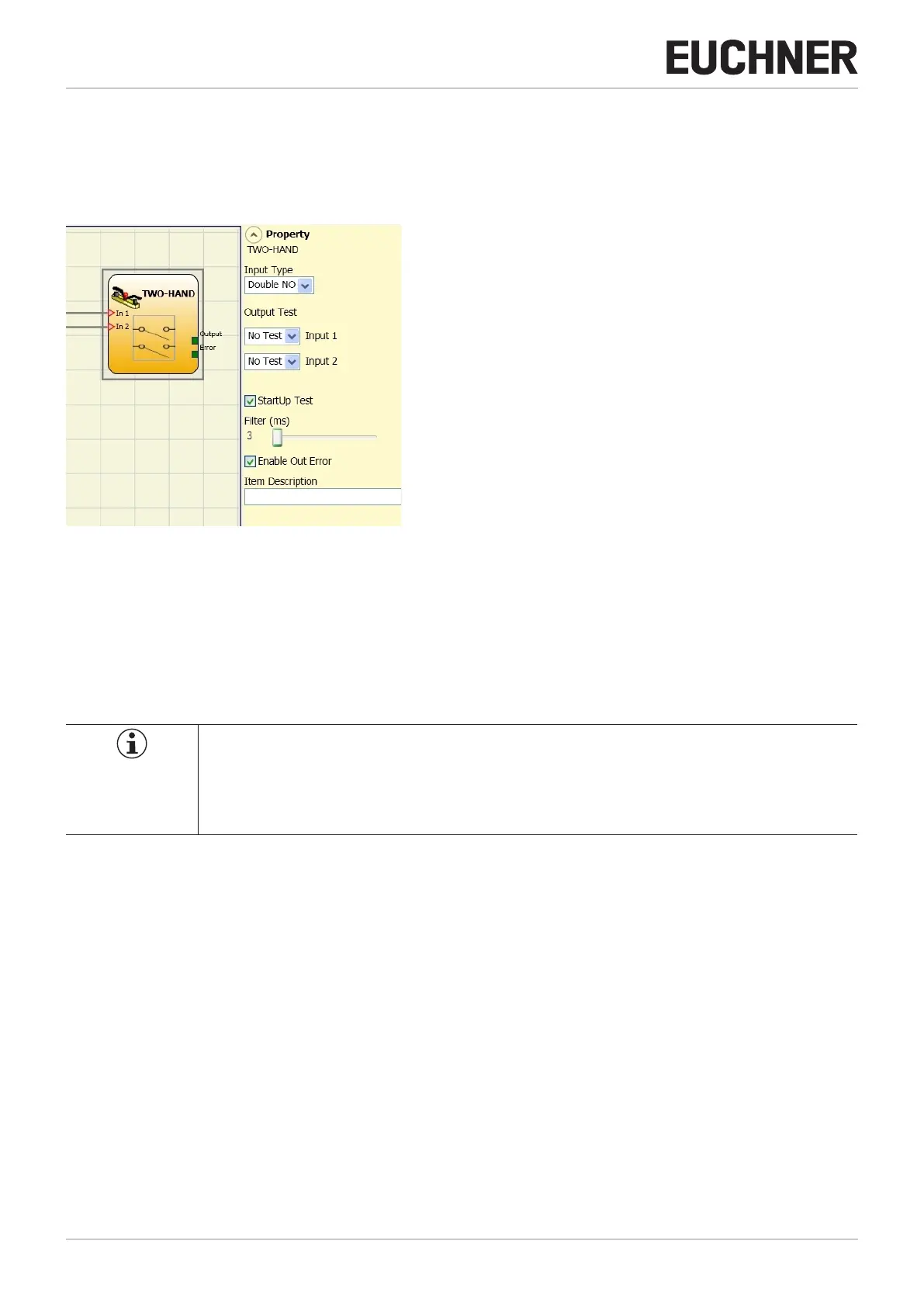 Using the TWO-HAND function block the input status of a two-hand control switch is checked.