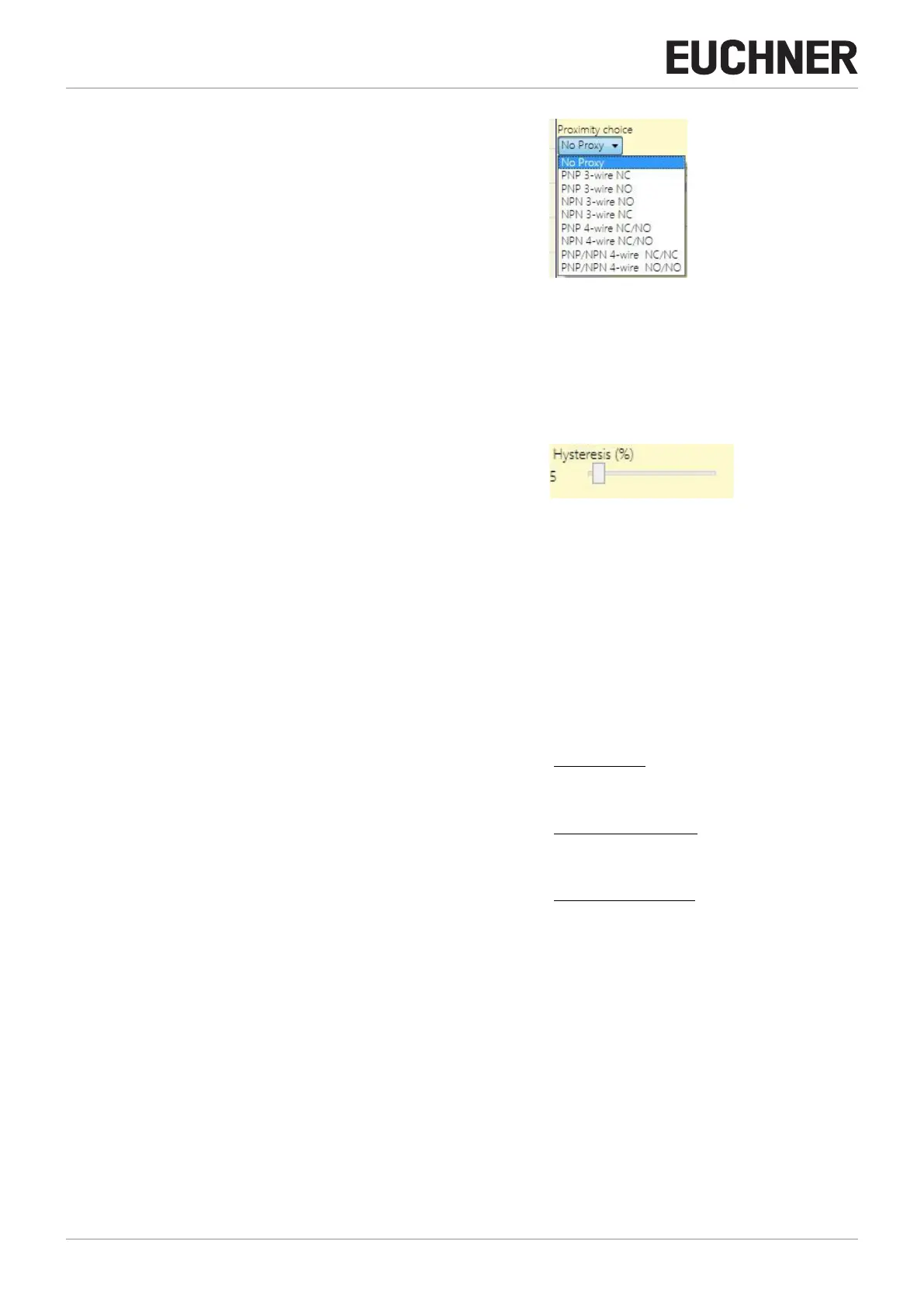 Hysteresis (%): Corresponds to the hysteresis (in percent) below