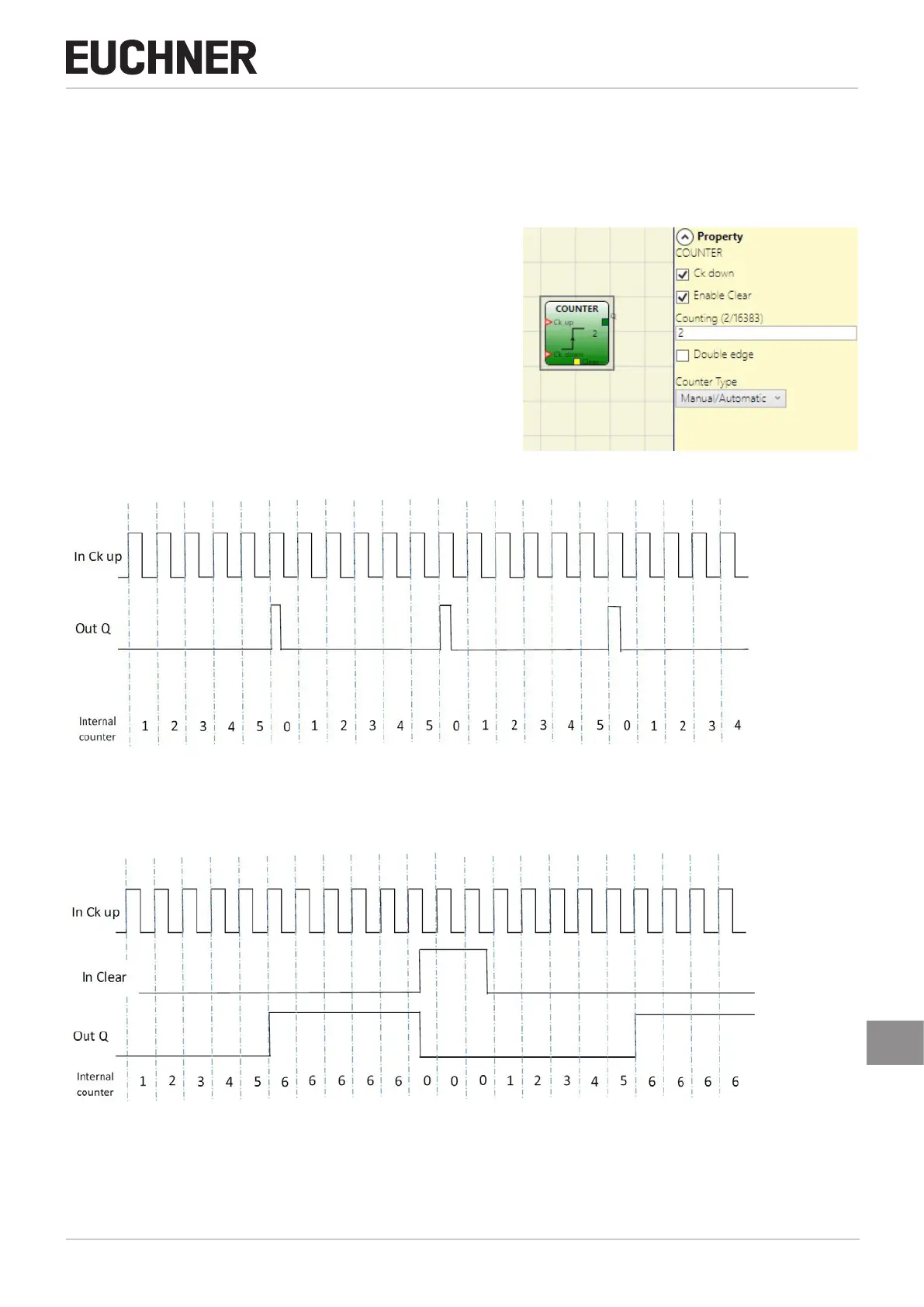 The operators of type COUNTER enable the user to generate a signal (TRUE) as soon as the count entered is reached.