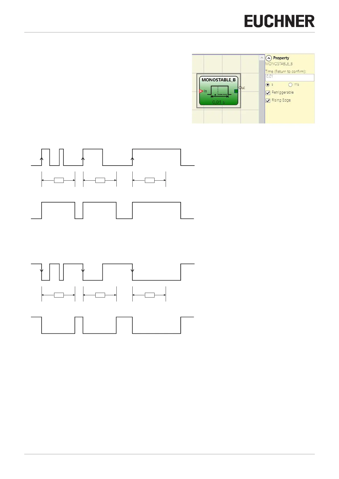 Retriggerable: If selected, the time is reset on each status change on the input.