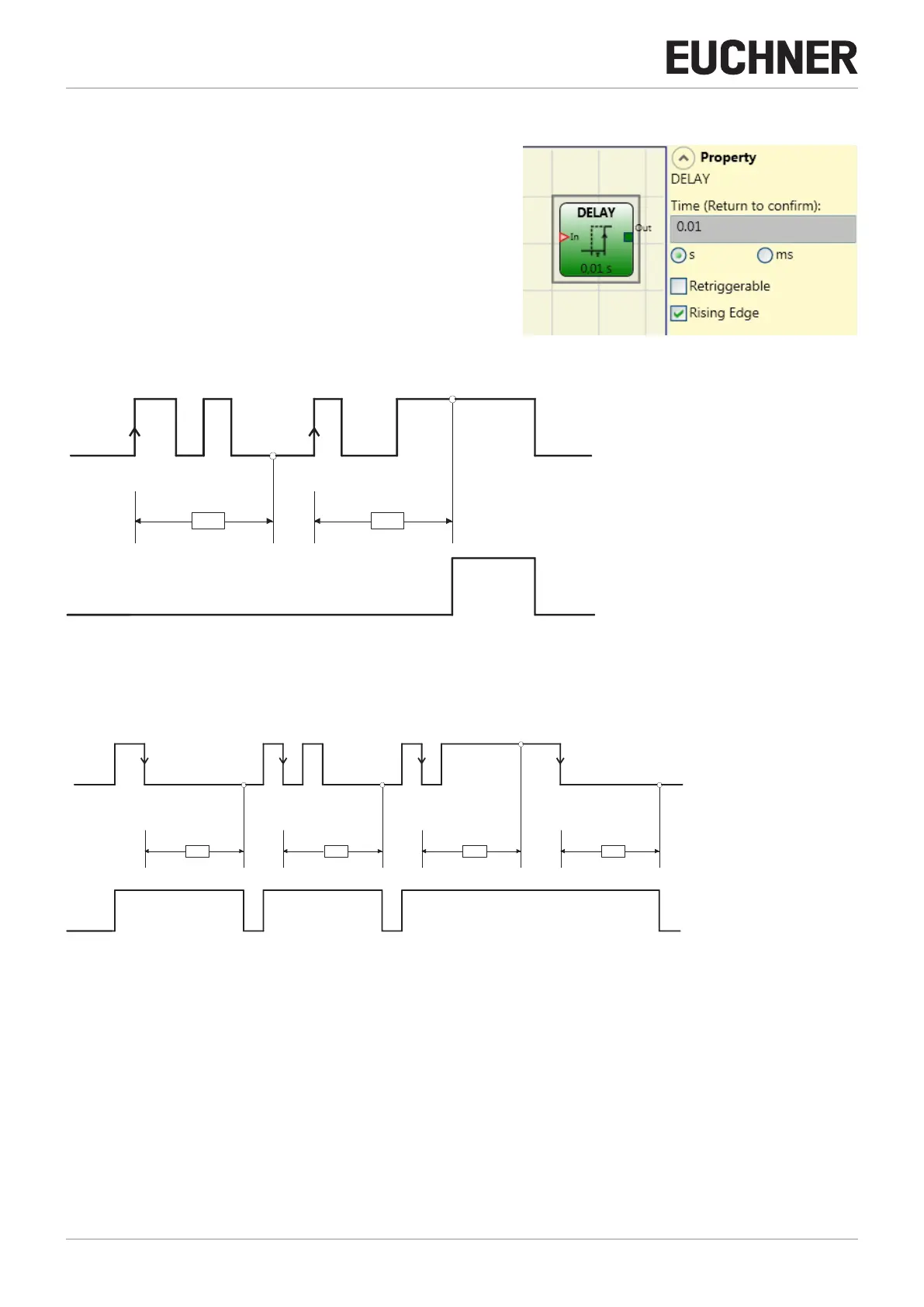 Retriggerable: If selected, the delay is reset on each status change on the input.