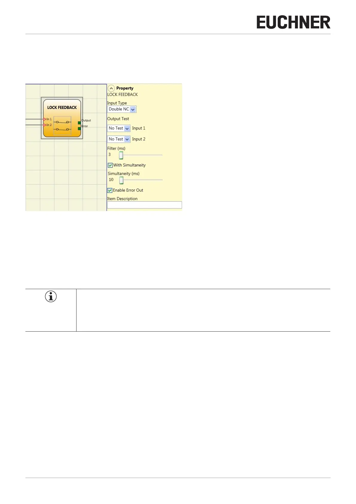 Using the LOCK FEEDBACK function block the state of the guard locking monitoring inputs for a movable guard or a safety