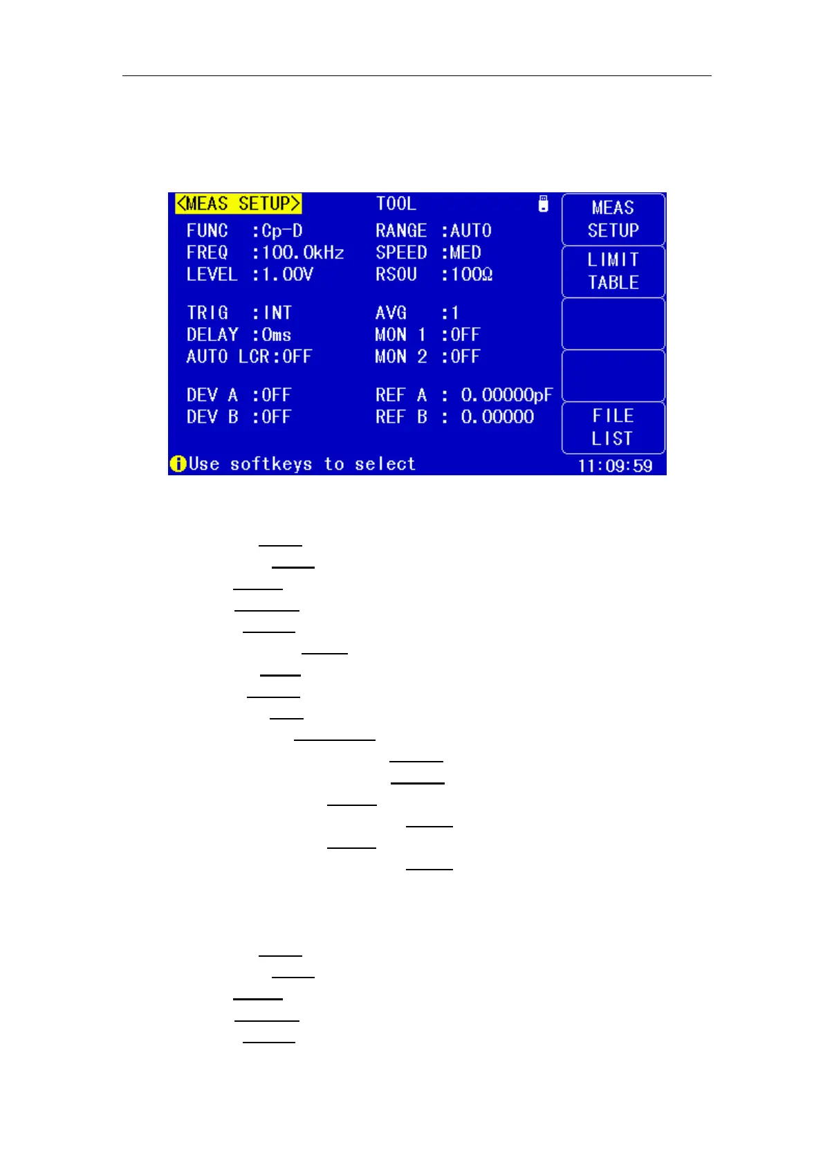 Press [ SETUP] to enter into the <MEAS SETUP> page shown as below: