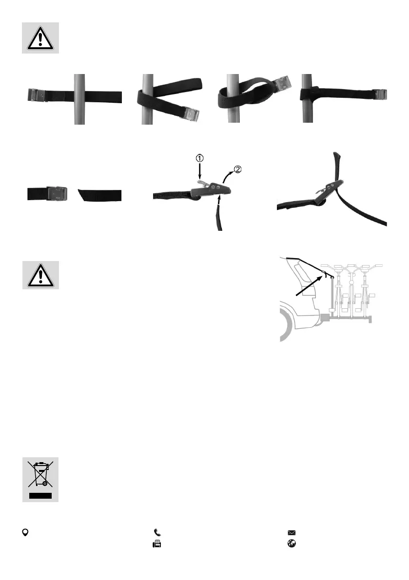 • Check the bicycle rack regularly for damages. Damaged or worn parts must be replaced immediately. Only original replacement parts may be used.