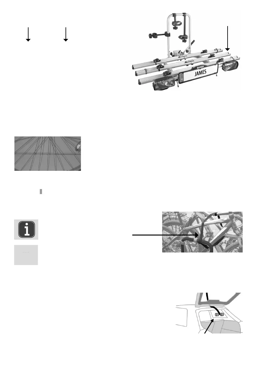 La terza bicicletta viene ssata dalla bici 2 alla bici 3 tramite il braccio di ssaggio fornito in dotazione. Inoltre, con la piccola cinghia di ssaggio allentata