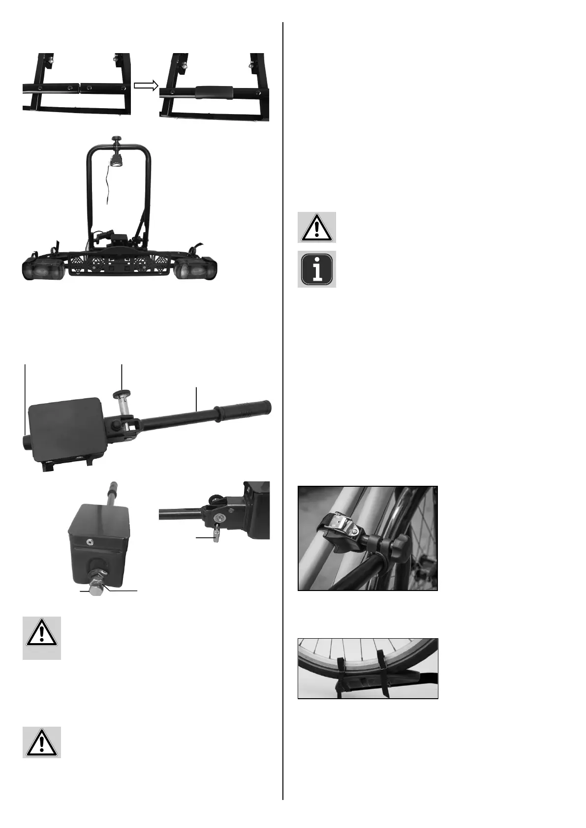 the attachment of the bicycle to the rack. Also regularly check the functions