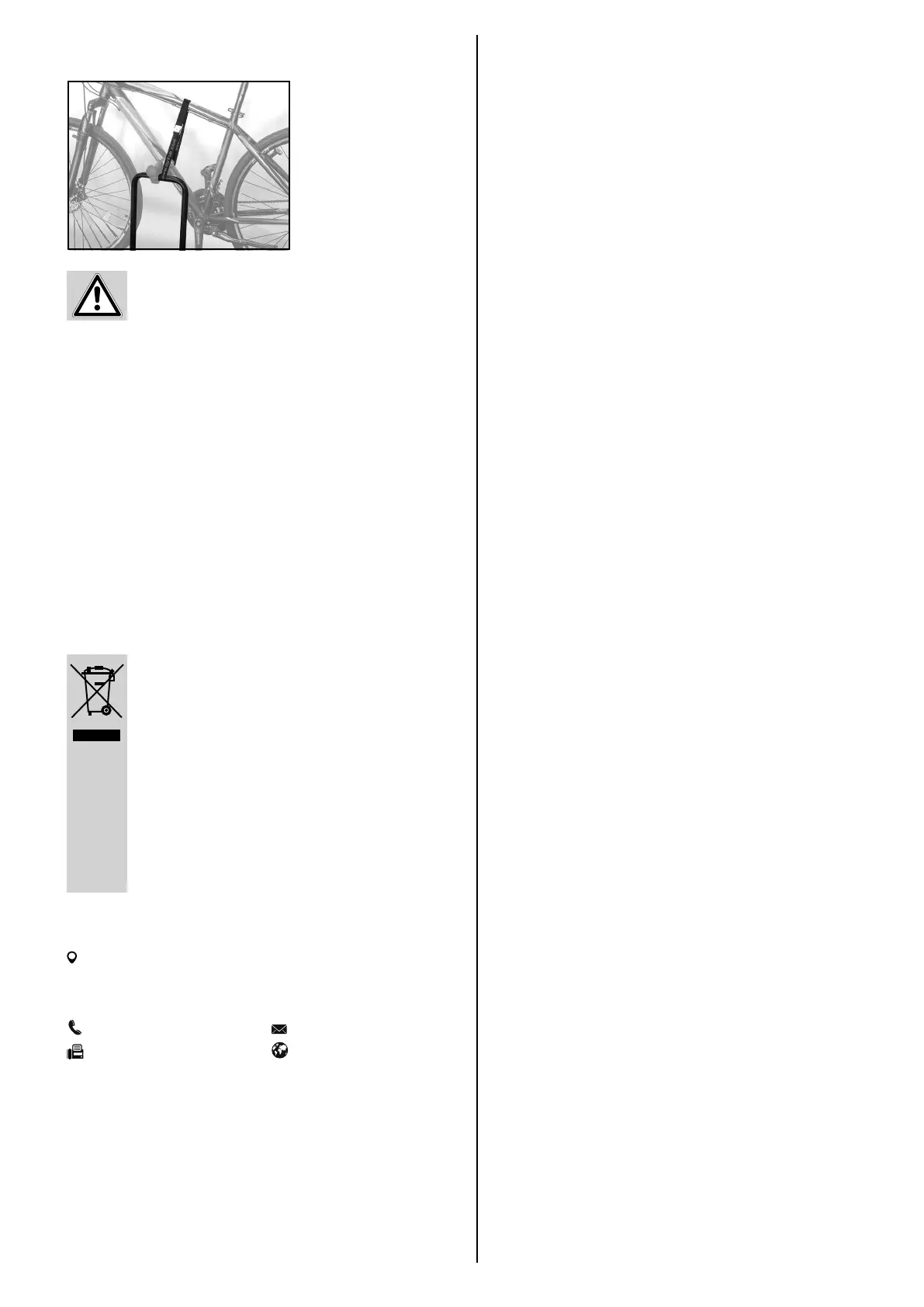 • Check the bicycle rack regularly for damages. Damaged or worn parts