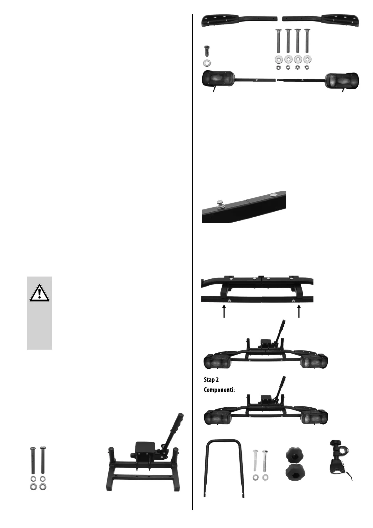 gaten recht boven de gaten van het basisframe. Bevestig de wielhouders