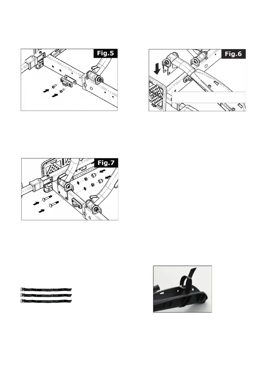 Insert the short tensioning strap from the inside to the outside below the bike holder and then from the outside to the