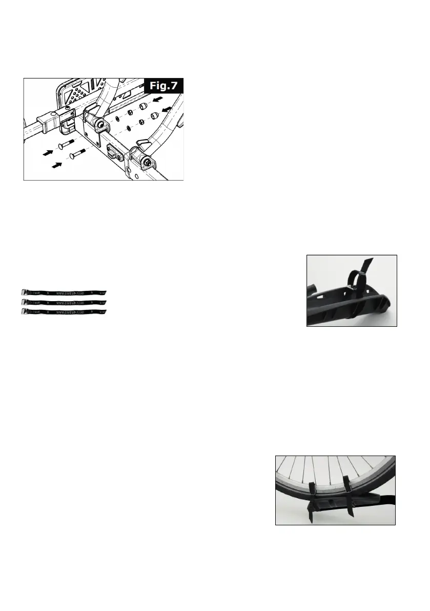 à travers les trous oblongs du porte-roue (voir Figure 11). Pour la roue arrière du vélo, utilisez le trou oblong central du por-