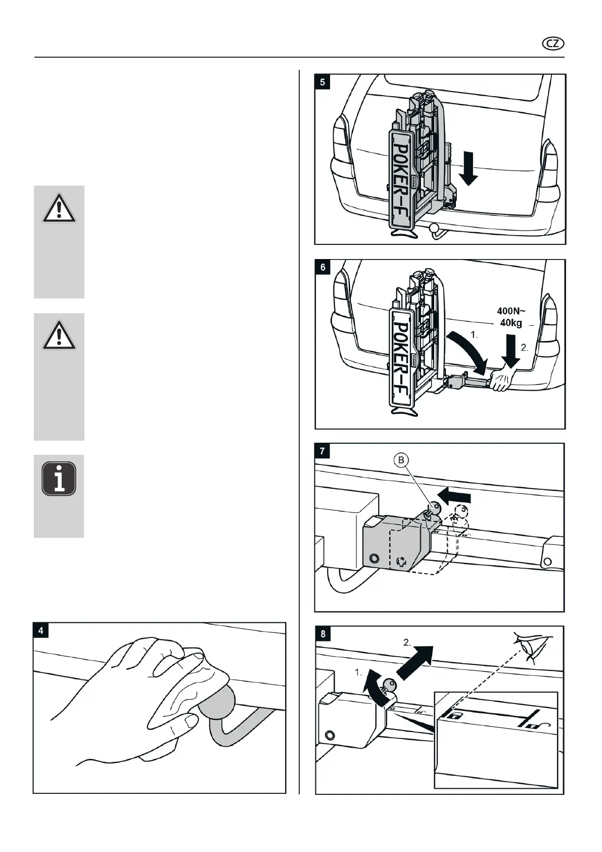 Nosič jízdních kol nemontujte, pokud je